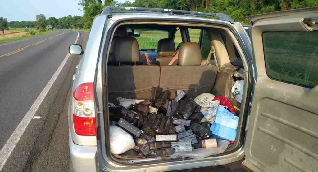 Na BR-277, em Santa Terezinha de Itaipu (PR), foram retidos 28 celulares e equipamentos de informática, dez cigarros eletrônicos e cosméticos importados irregularmente do Paraguai. A abordagem ocorreu perto das 10h30.