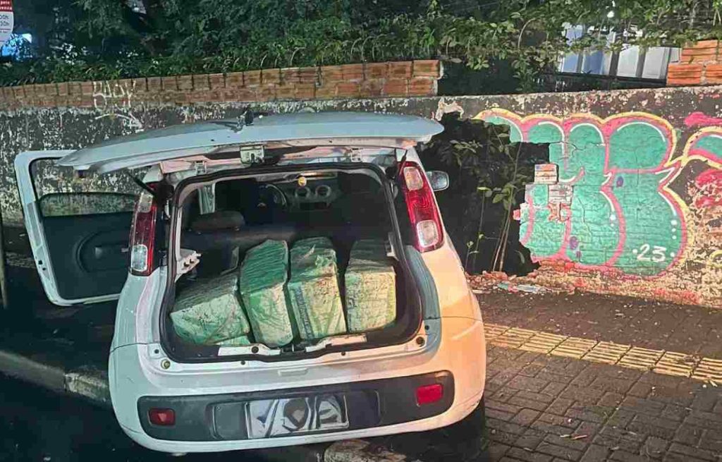 Em fuga da polícia, o motorista de um Fiat Uno carregado com droga saltou do veículo em movimento, e o automóvel bateu em um muro no centro de Foz do Iguaçu. A ocorrência foi registrada nessa quarta-feira, 29.