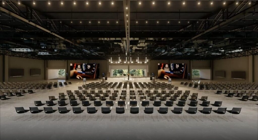 Além disso, o complexo conta com salas de apoio, camarins, elevadores de serviço, acesso subterrâneo logístico e 600 vagas de estacionamento.