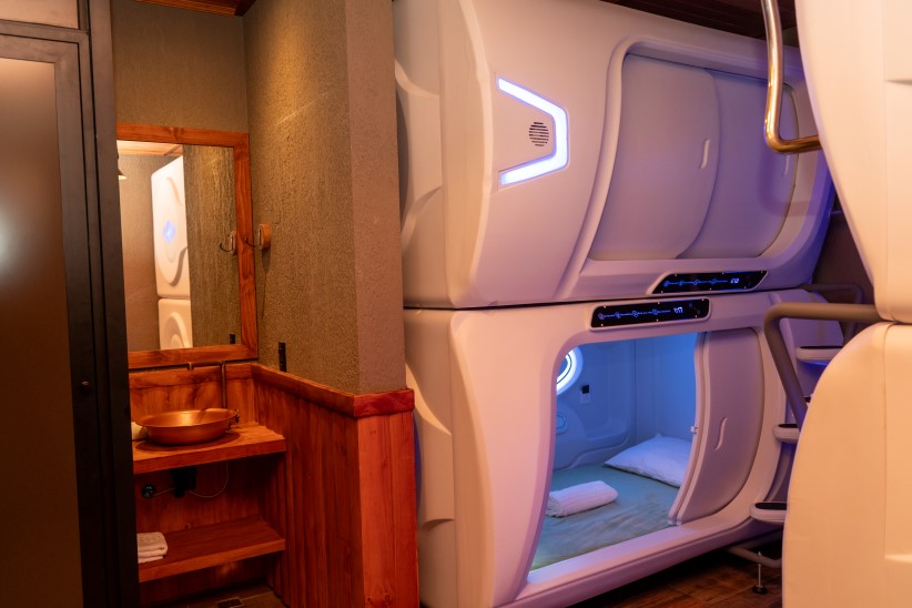 São 58 cápsulas, de quatro a seis por quarto em que estão instaladas, possuindo ventiladores para a troca do ar. Para manter a temperatura agradável, há aparelhos de ar condicionado de alto desempenho.