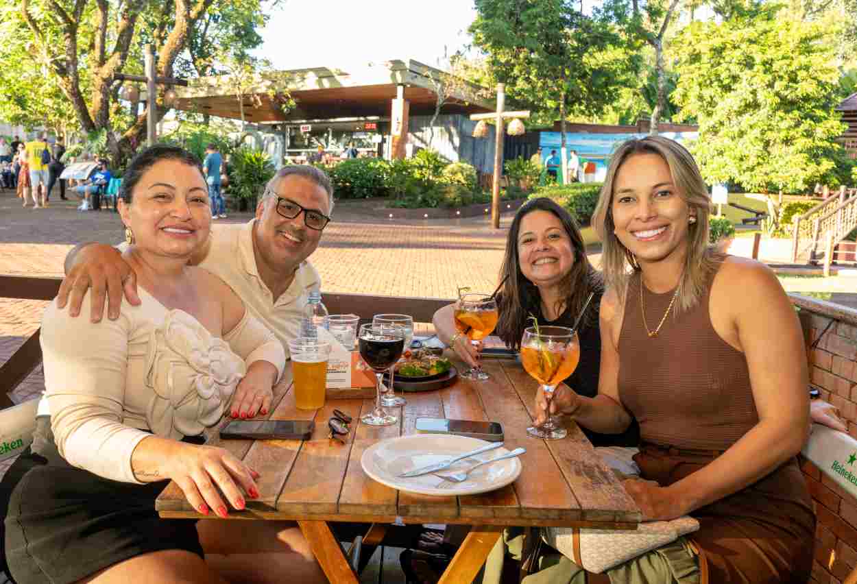 À mesa, os novos amigos que fizeram em Foz do Iguaçu: o casal Adriana e Jefferson Guilherme, de São Paulo (SP). “Nós queremos aproveitar os shows e os serviços que o Marco oferece. Escolhemos um lugar estratégico, assim temos os drinques e a gastronomia, todos sentados, em um lugar agradável e podendo assistir ao show cultural”, contou Daniela.