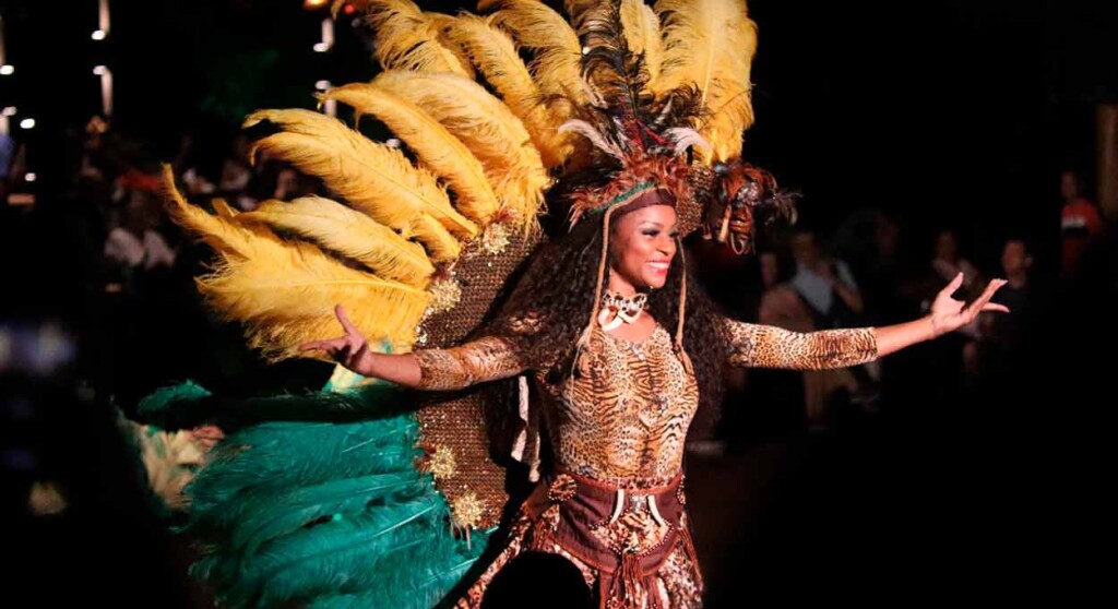 Em seguida, o público assiste a um minueto histórico, uma homenagem à chegada dos europeus ao território. A encenação remete ao navegador Alvar Núñez Cabeza de Vaca, que chegou à região das Cataratas do Iguaçu em 1542.